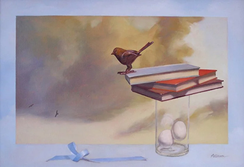Barbara Peterson is an award-winning painter and instructor, formally trained at Pratt Institute in New York City. Working primarily in oil, she explores the connections between nature, people, and the unseen narratives within both. Peterson's surrealistic Transitions series blends traditional techniques with a contemporary aesthetic, merging still life and landscape to reflect on human relationships and introspection.