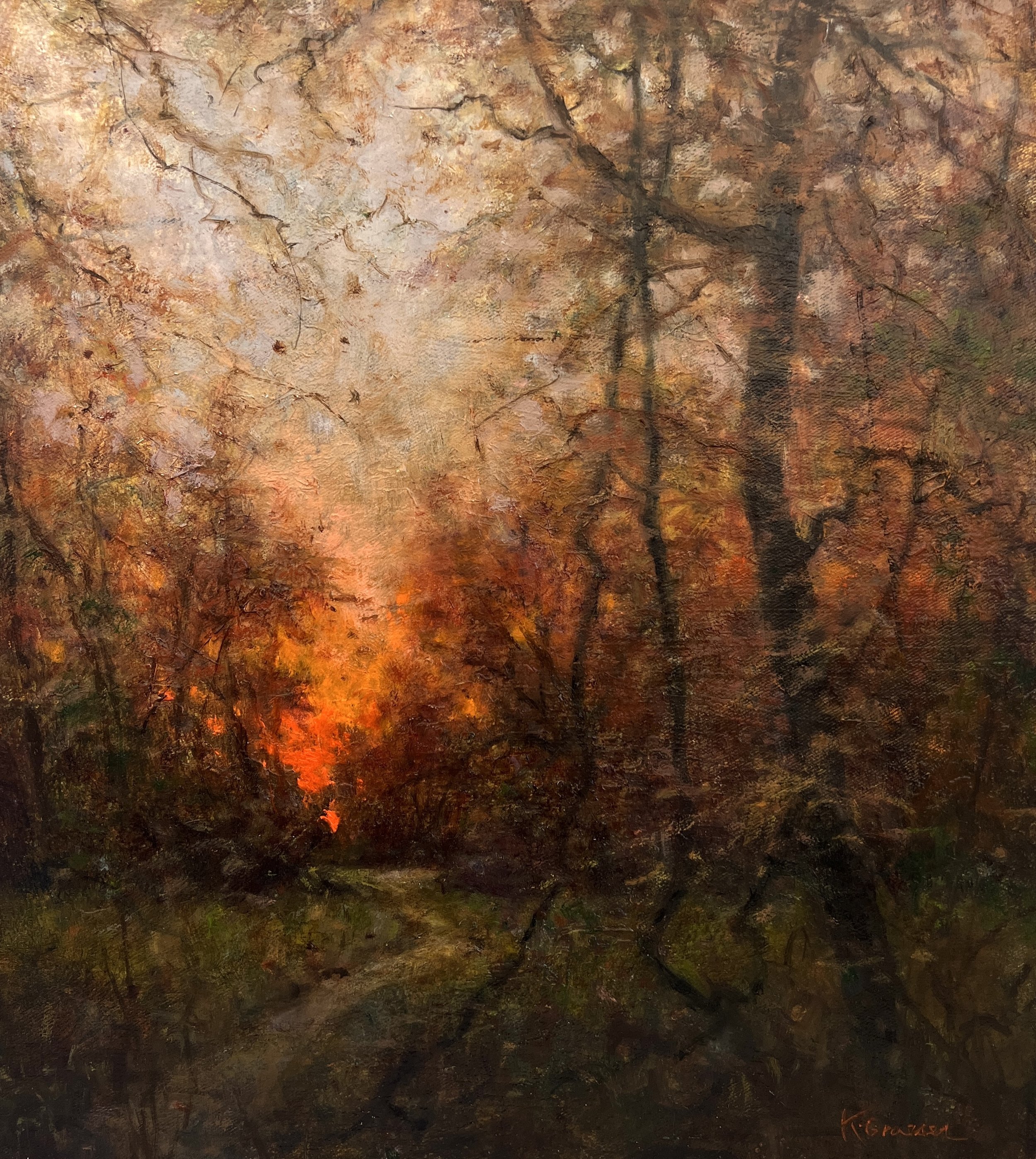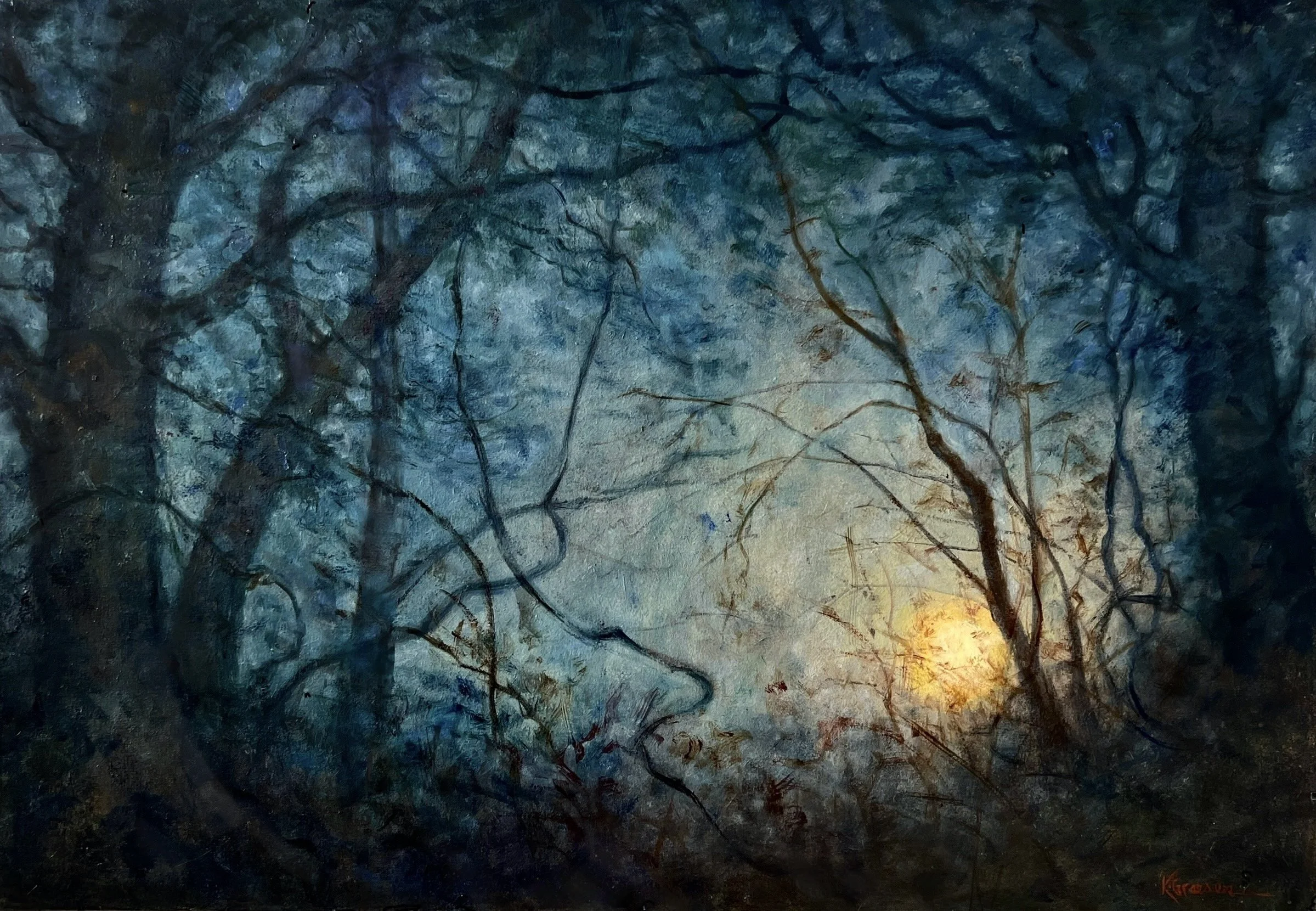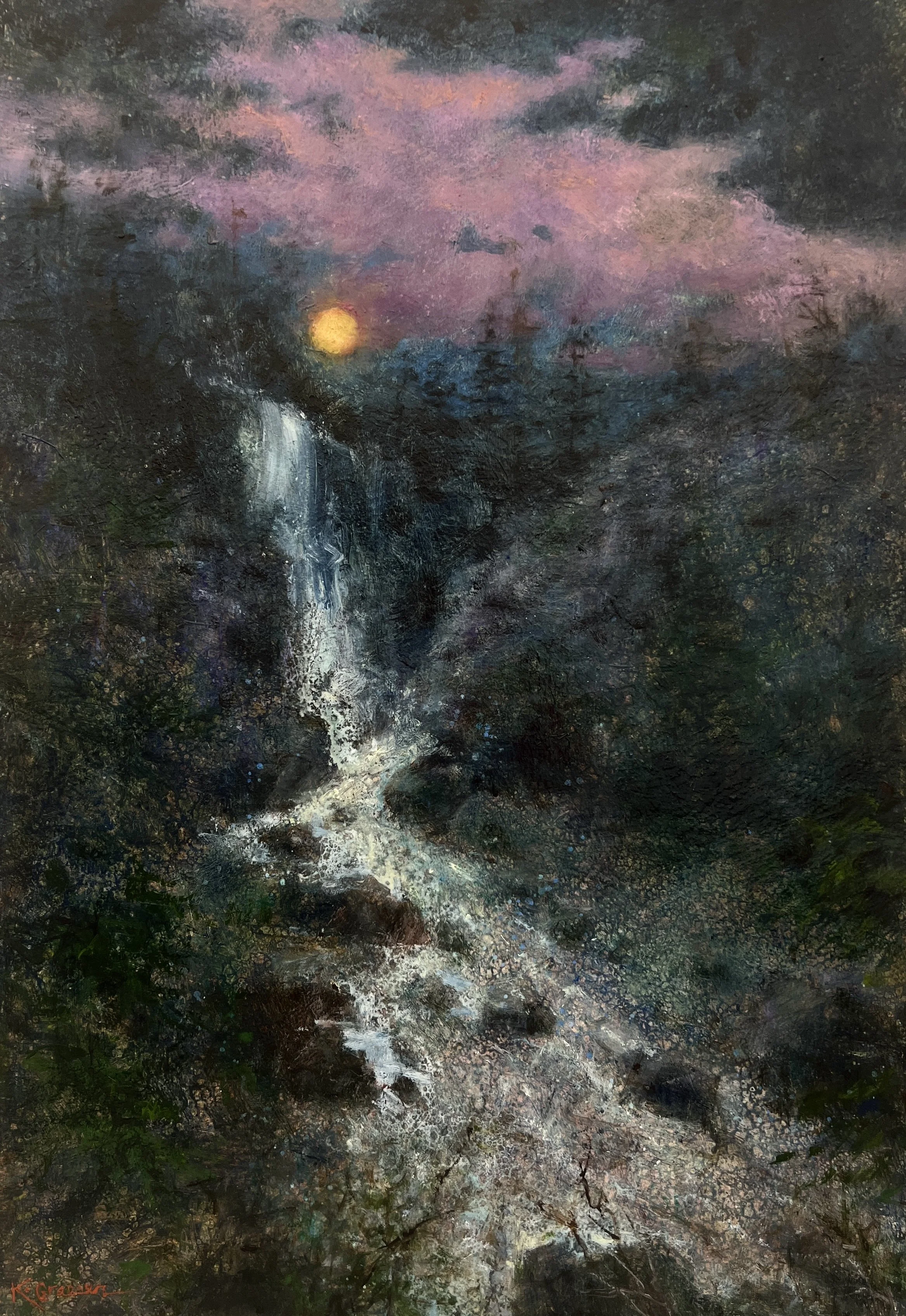 Karen’s paintings take inspiration from the American Tonalism movement of the late 1980’s which featured moody and shadowy landscapes. Karen seeks to create iconic scenes which evoke a contemplative peaceful and dreamy atmosphere.