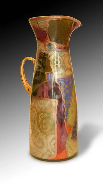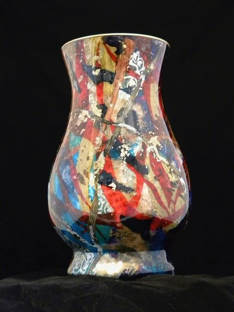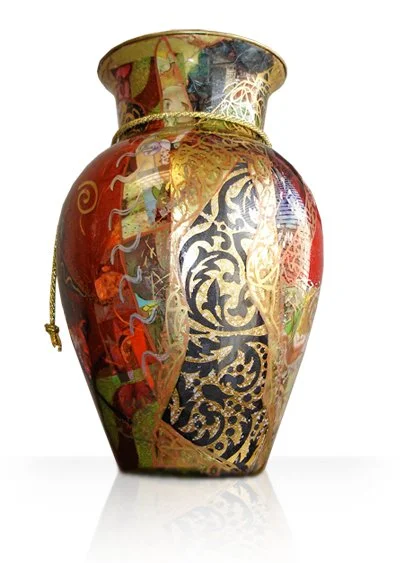 My Vessels are a culmination of memories and dreams. The ideas of infinity and barakka* flow through these one-of-a-kind works of art. My technique allows me to incorporate many different skills accumulated over the years into one unique piece. Combining painting, drawing, collage, and more into each vessel. Entwined within are hidden codes, ancient languages, miniature paintings, symbols and images. The process involves many stages as the vessel begins to reveal itself after several weeks of work. Each vessel begins to take on a life of its own which guides me on to the finished work of art. The act of creating is and has always been my joy, passion and purpose.