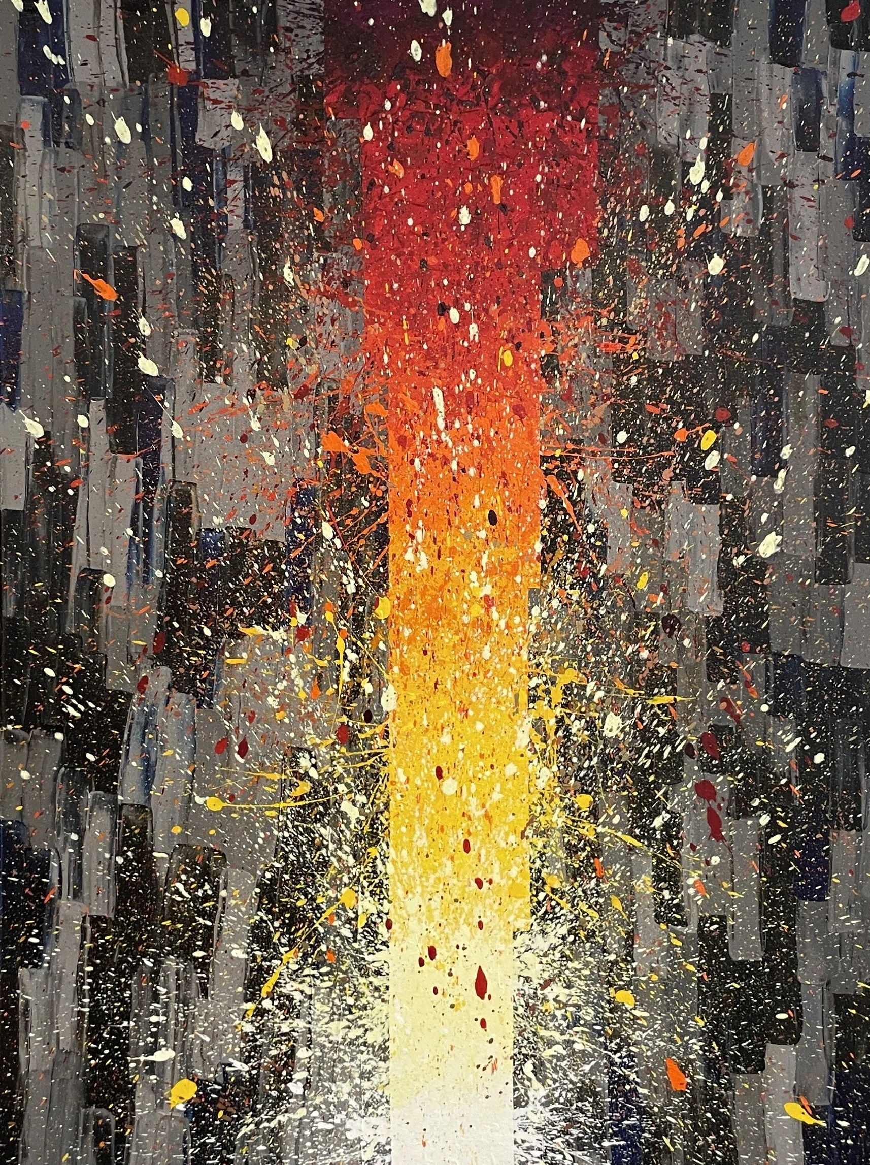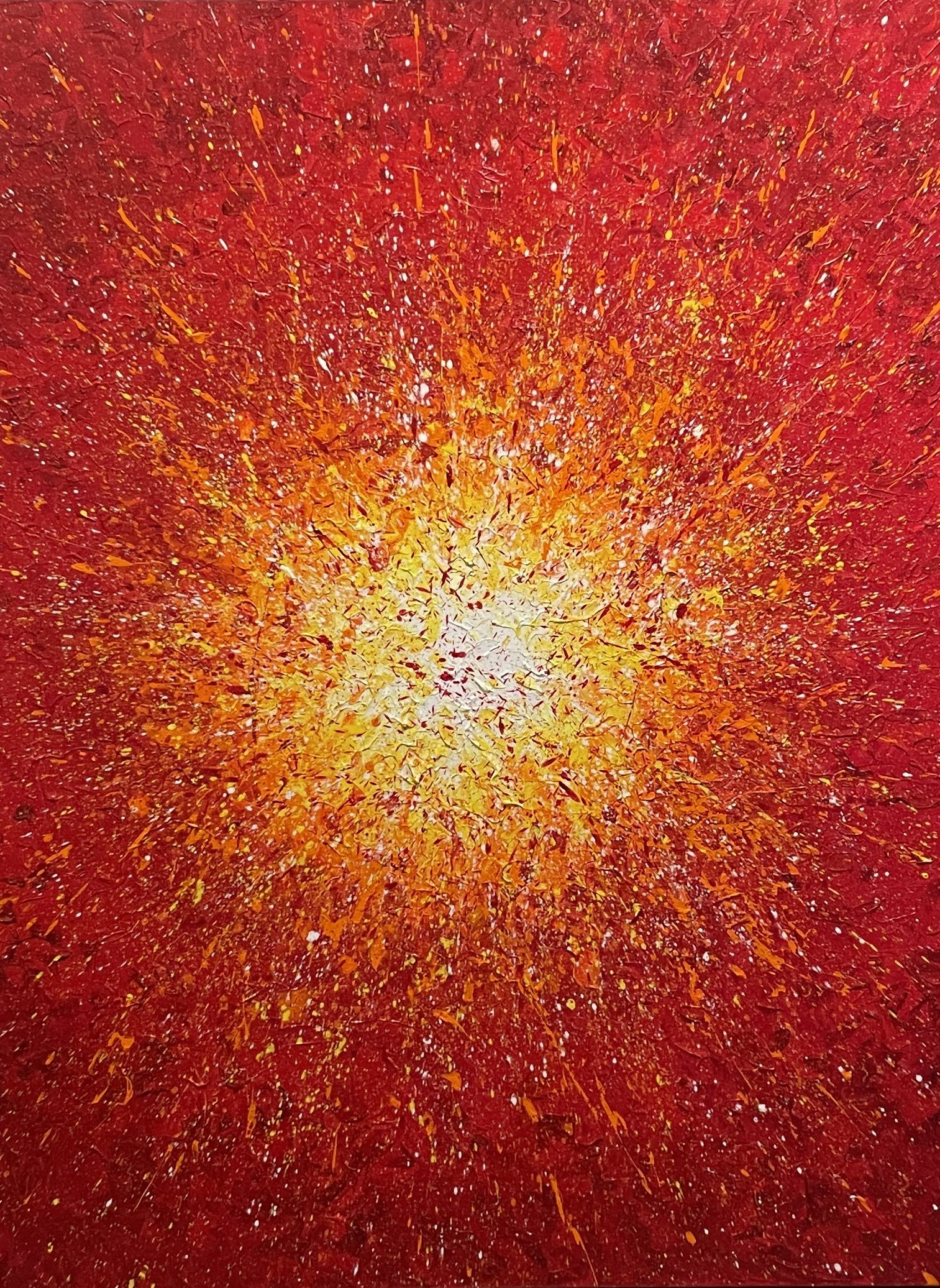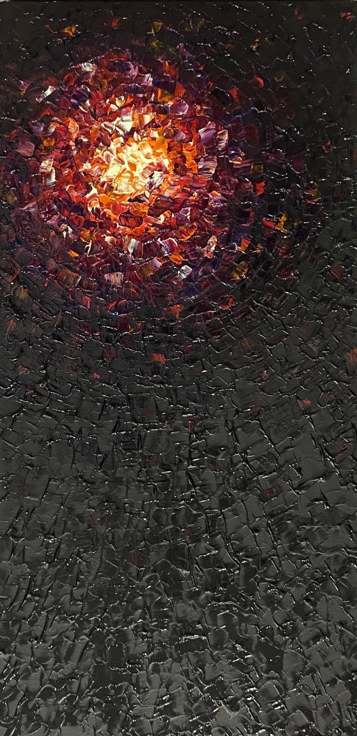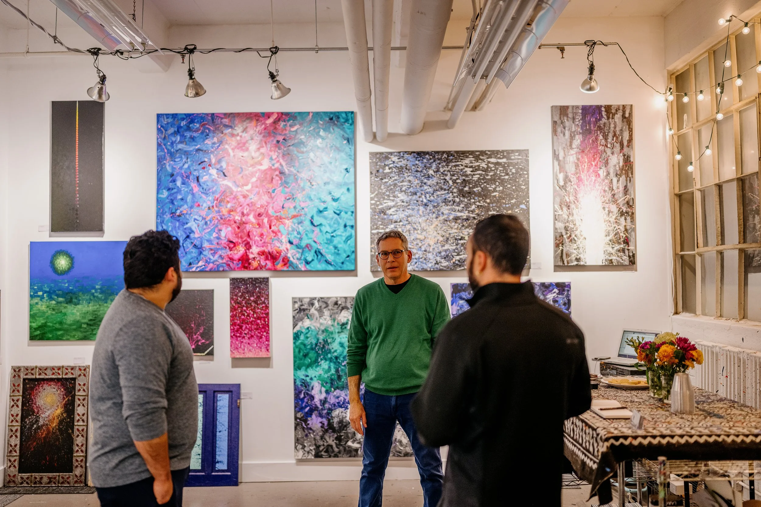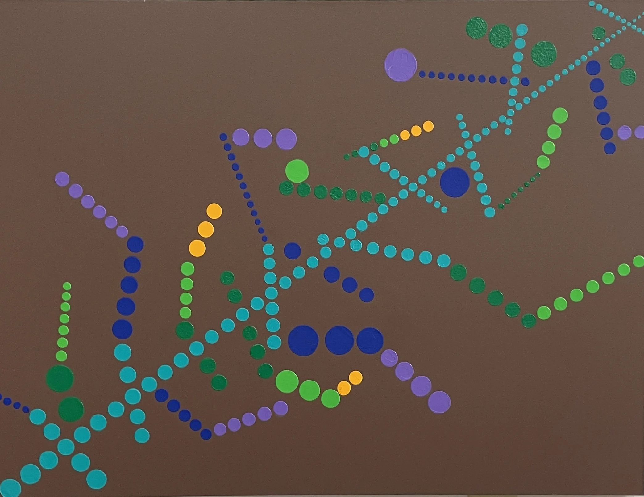 Stuart is a self-taught abstract expressionist who began painting later in life, inspired by the beauty and power of color. His work explores the random yet intentional blending and patterning found throughout nature—drawing from galactic, botanical, and biological imagery.